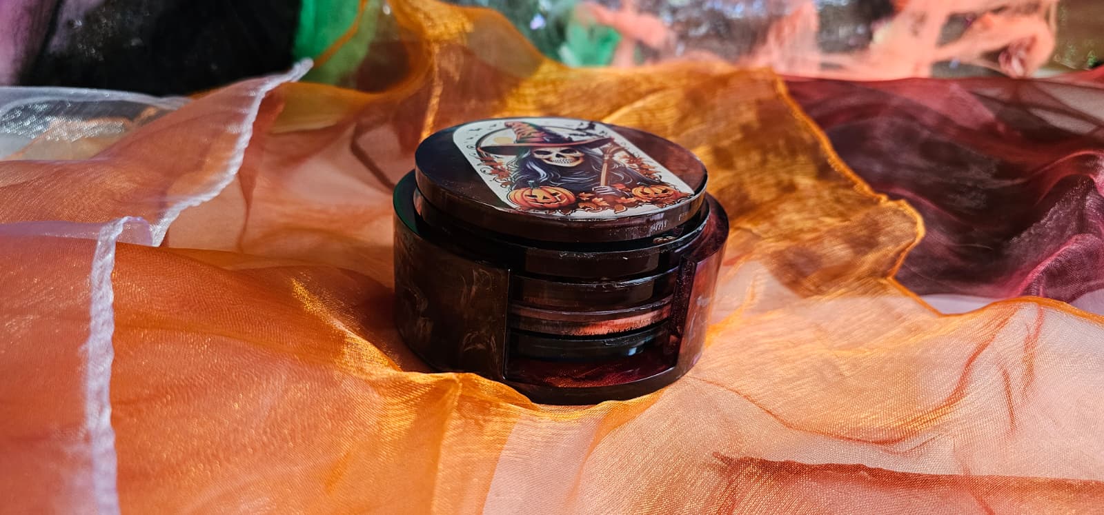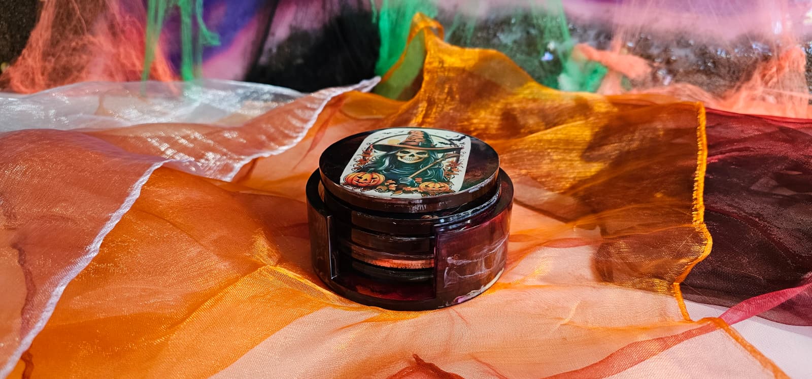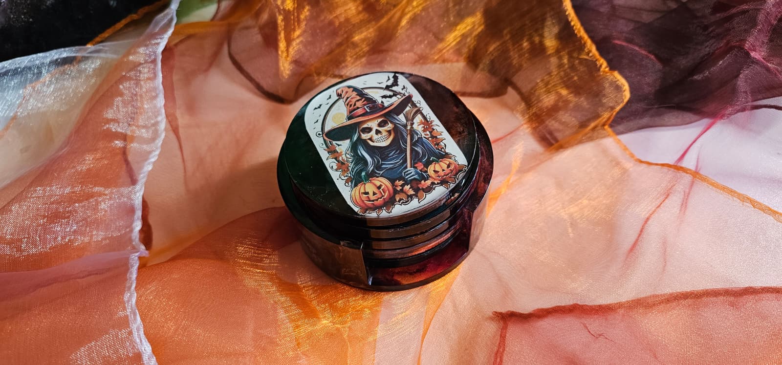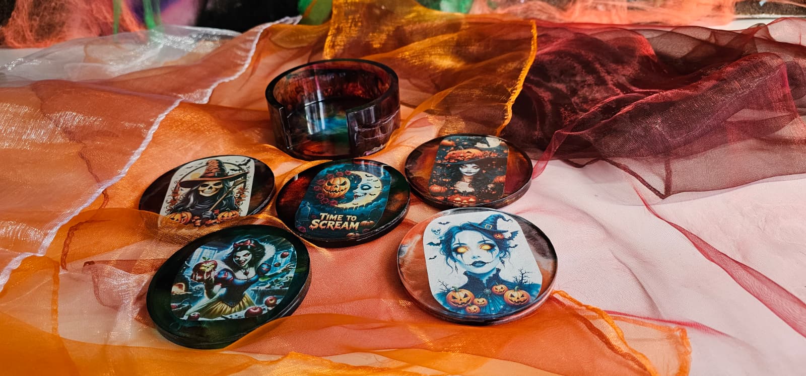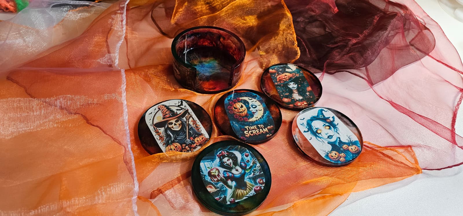 Halloween Untersetzer Epoxidharz 5er Set | Handgemacht mit Halterung