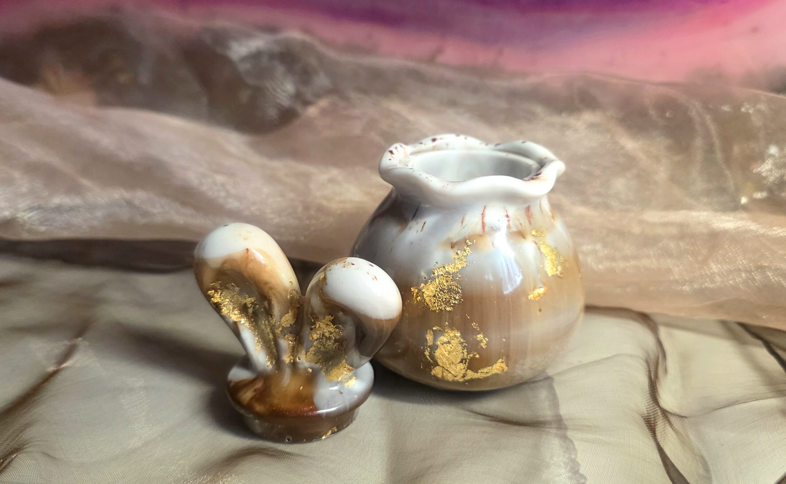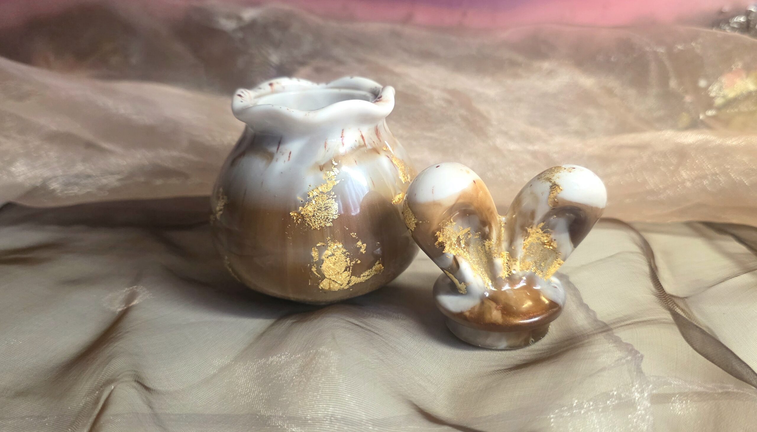 Hol dir den Frühling nach Hause! Unsere handgefertigte Hasen-Dose aus Epoxidharz ist das perfekte Highlight für deine Osterzeit. In einem edlen Mix aus Mokka und Cremeweiß gegossen und mit echtem Blattgold veredelt, ist sie ein echtes Schmuckstück für jeden Tisch.